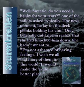 You may notice that the design is different. That’s because I don’t have the rights to the Droemer Knaur design and had to make my own cover. Once again, F+F Gunkelmann took over the design. I am deeply grateful to him. My gratitude also goes to Jela Schmidt, who did a marvellous job editing ‘Strumkrallen’. What would I do without these wonderful people?