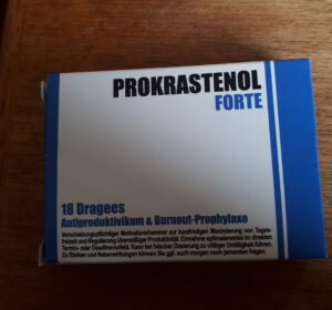 Ein Sponsor (ebenso existent wie die Kreaturen) verschenkte großzügig ein Medikament, das einem helfen sollte, ja nicht zu fleißig zu sein, indem es das Prokrastinationsverhalten förderte. Eigentlich brauchte ich dieses Medikament nicht. Ich prokrastiniere sehr erfolgreich ohne fremde Hilfe.