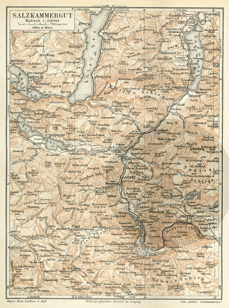 Ein Gemälde des Grundlsees aus dem 19. Jahrhundert mit Totem Gebirge im Hintergrund stammt von Rudolf von Alt. Durch das Innere der Berge links kämpfen sich Charlotte und Arpad.